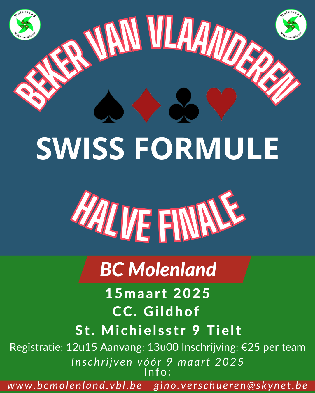 BC Molenland heeft het genoegen jullie uit te nodigen als gast op de Halve Finale van de Beker van West-Vlaanderen, die plaatsvindt op zaterdag 15 maart 2025.