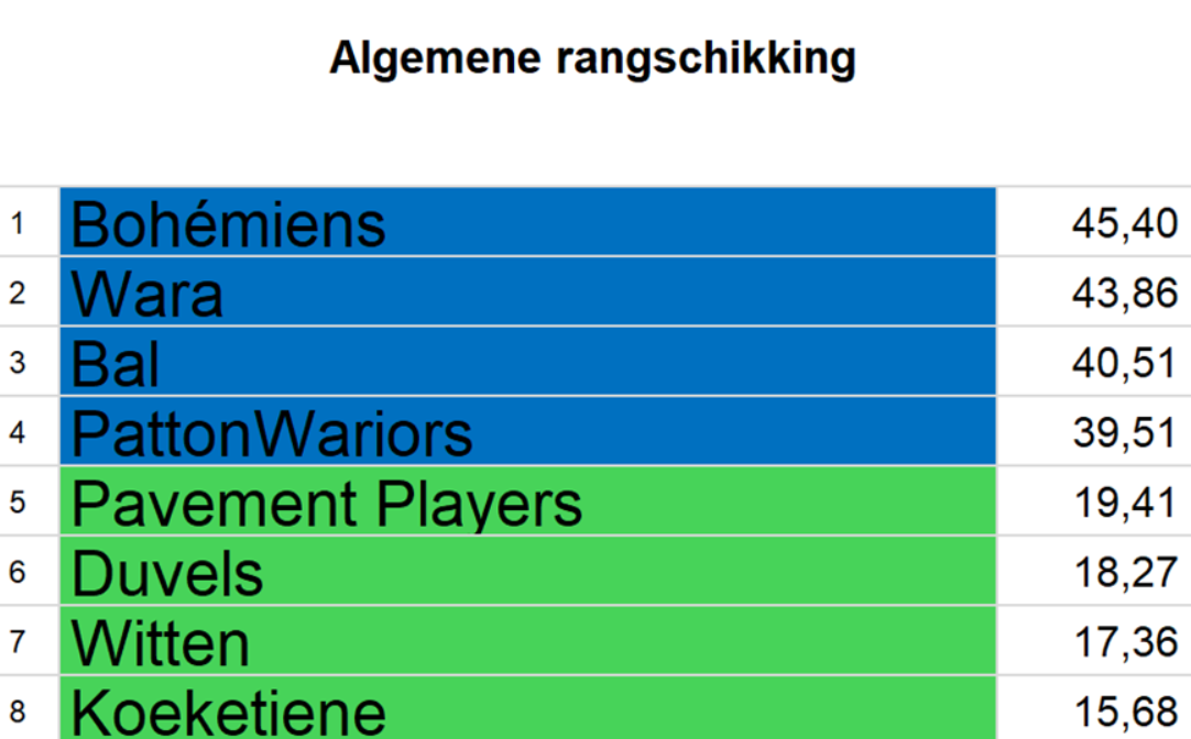 Rangschikking na speeldag 1 - donderdag 18 september 2025